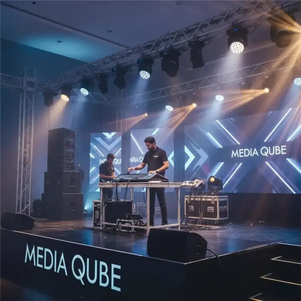 Media Qube is a trusted name in audio-visual equipment rentals, offering complete solutions for every type of event. From corporate meetings and award shows to weddings, concerts, and cultural programs, we deliver professional-grade sound, lighting, and LED wall setups that elevate every experience. Our expert technical team ensures smooth installation, operation, and support throughout your event. We use premium brands and the latest technology to guarantee quality, reliability, and performance. At Media Qube, we don’t just set the stage — we make every moment shine.